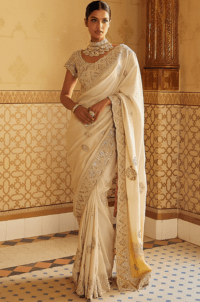 Pearl White Sari Motifs