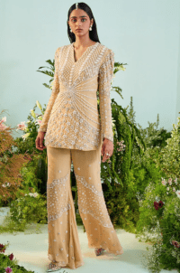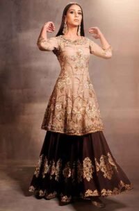 Beige & Ivory Tulle Hand Embroidered Sharara Set