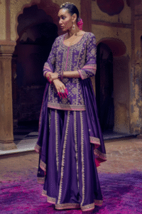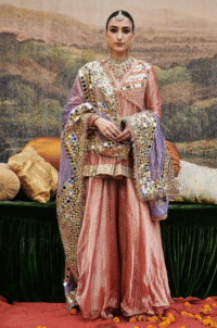 Baby Pink Satin Tulle Hand Embroidered Sharara Set
