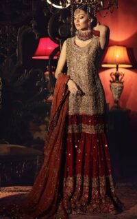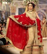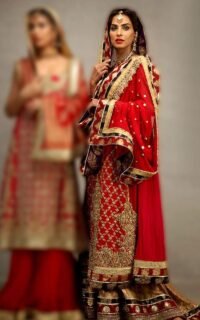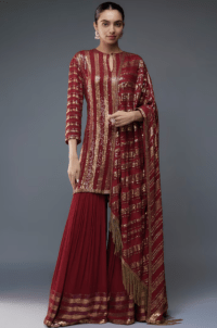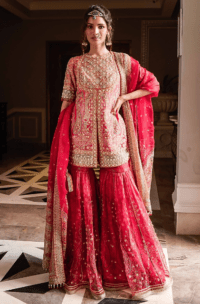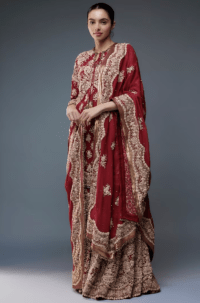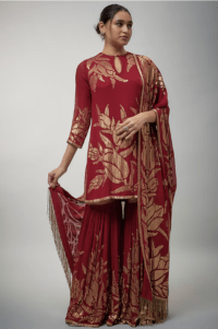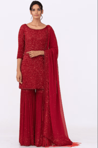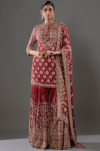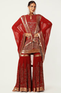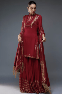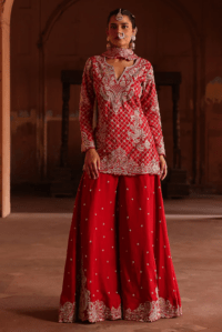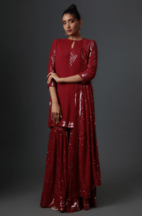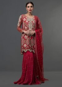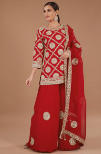 Red Dupion Silk Zardosi Embroidered Sharara Set