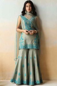 Silver-Grey Double Georgette & Crepe Sharara Set
