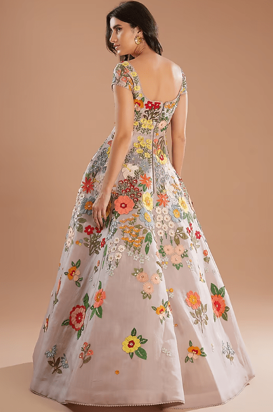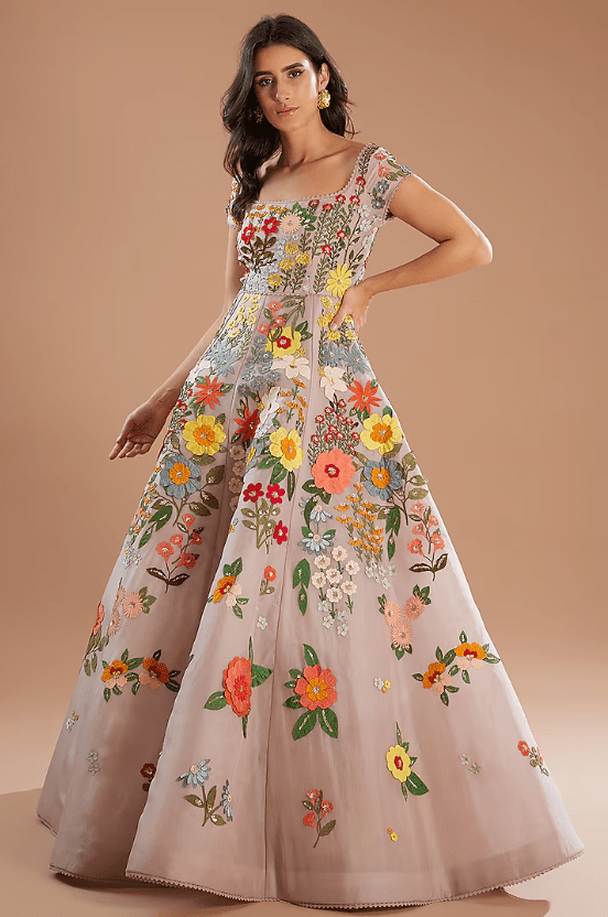 Ash Lilac Organza Floral Motif Embroidered Gown
