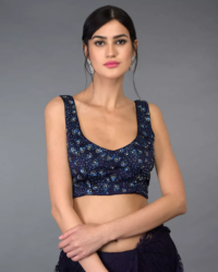 Black crochet blouse embellished with bugle beads all over. Dori at the back.
