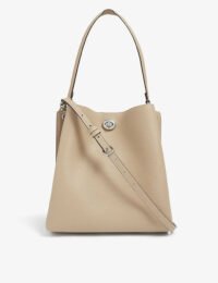 Rounded, woven by hand with a seamless structure, calf-lined interior, gold-tone hardware, single strap