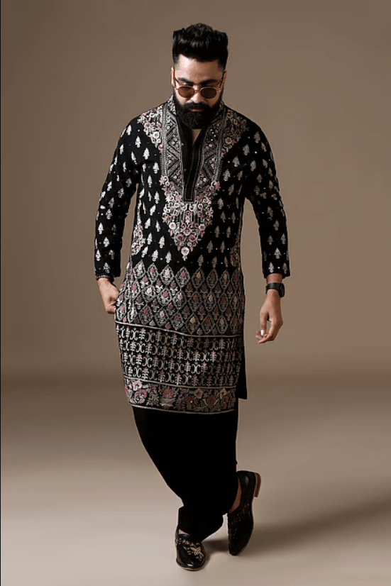 Black Lycra Mirrors, Embroidery Resham Kurta Set