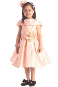 Featuring a black peplum dress based in neoprene with pink applique motifs. It comes with a matching hair accessory.