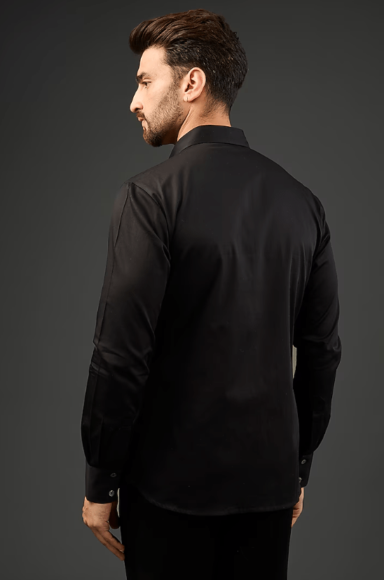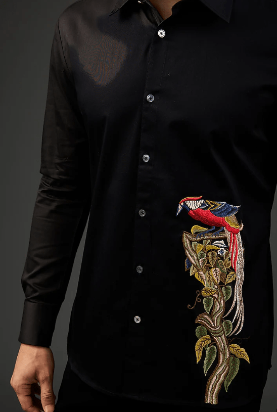 Featuring a black shirt in poplin base with embroidery. Style it with pants for casual wear or an evening look, exuding charm and elegance.