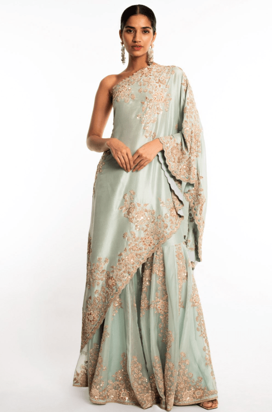Blue embroidered tunic with a sharara