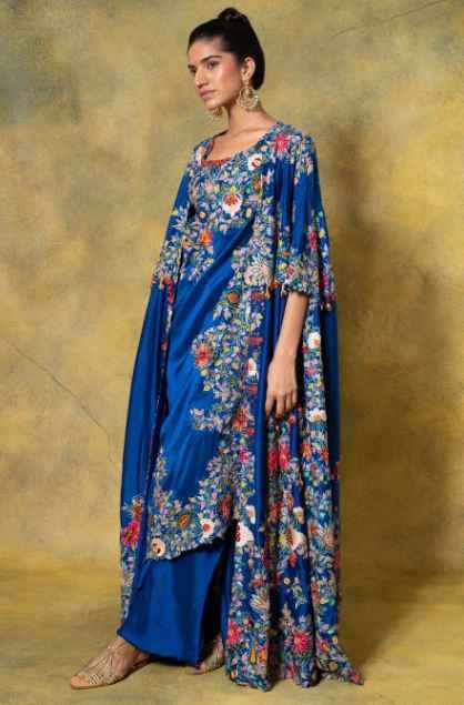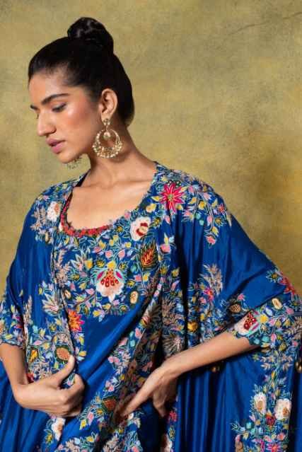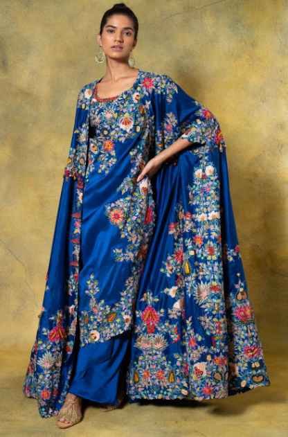 No Of Components : 4 (Bustier+Drape+Skirt+Cape)Colour : BlueMaterial/Fabric : SilkFit : True to sizeCare Tip : Dry Clean Only