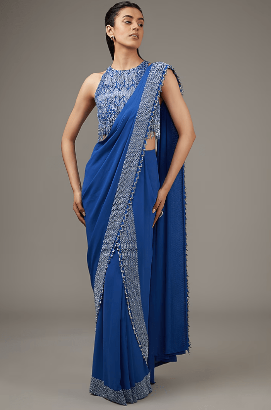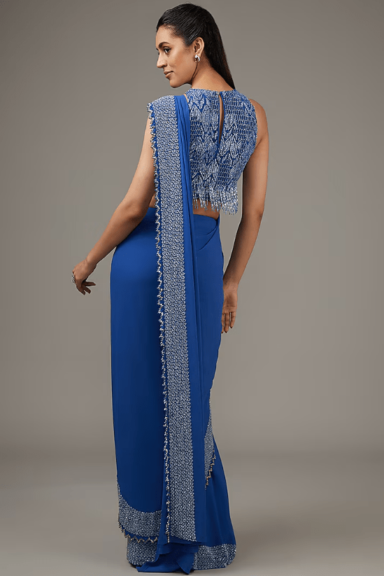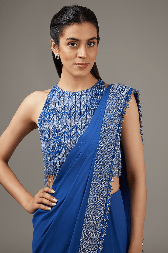 Blue Tulle Cut Beads Embroidered Lehenga Set