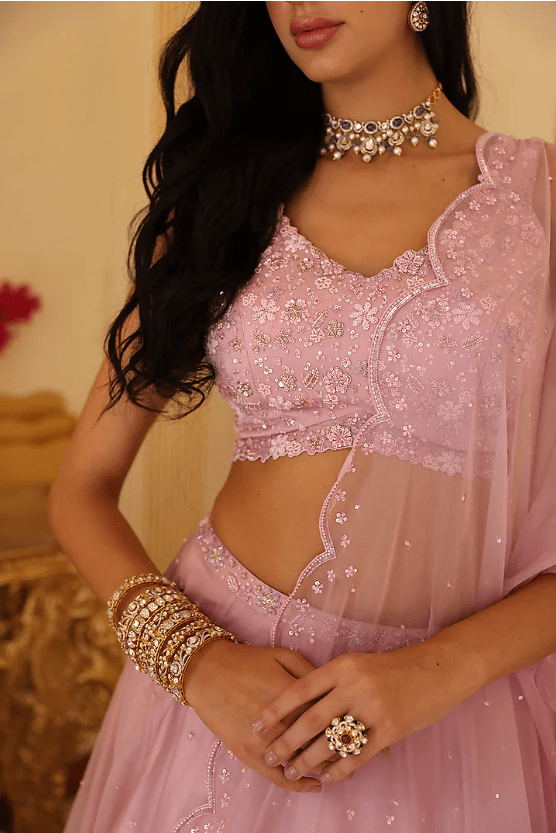 Featuring a carnation pink lehenga in satin and organza base with hand embroidery and cancan. It is paired with a satin organza blouse and an organza dupatta. Accentuate it with statement earrings and heels for a wedding or engagement ceremony.