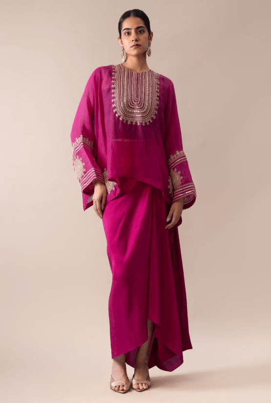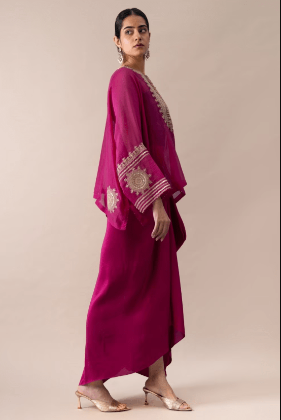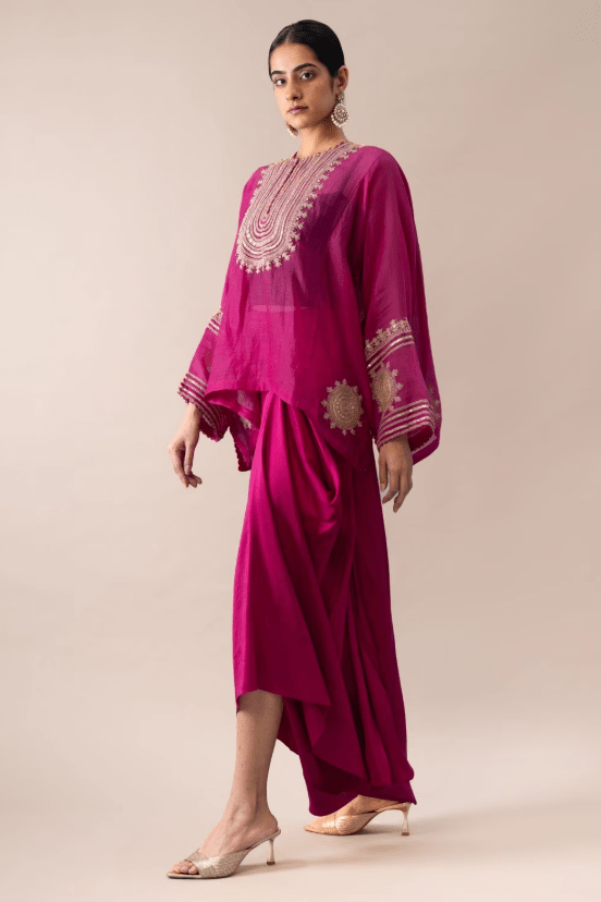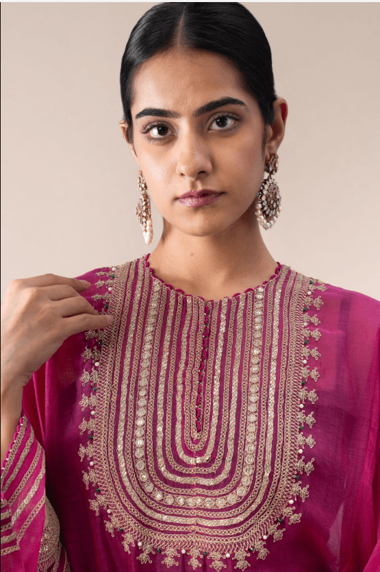 Fuchsia Silk Neck Embroidered Co-Ord Set