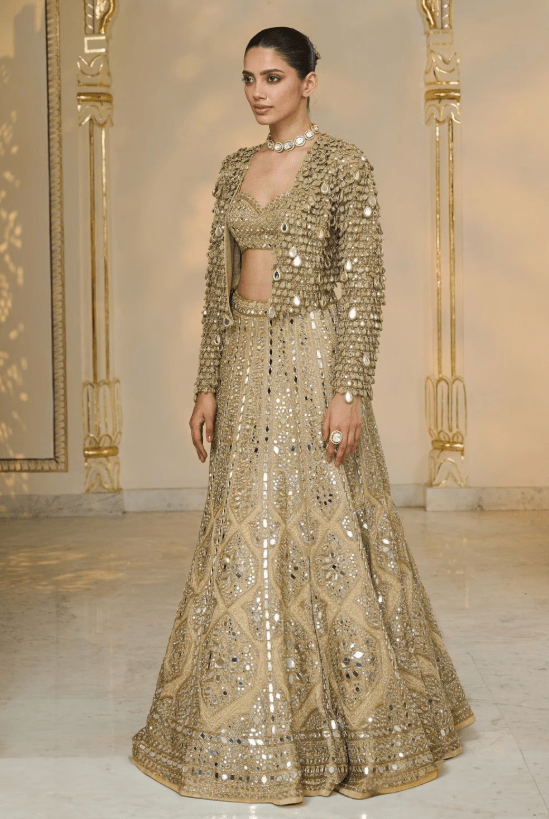Gold Mirror-Thread Handwork Jacket-Lehenga set