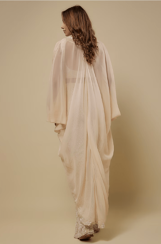 Ivory Organza Embellished Cape Set