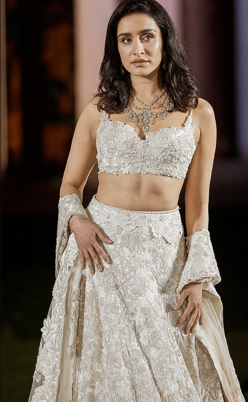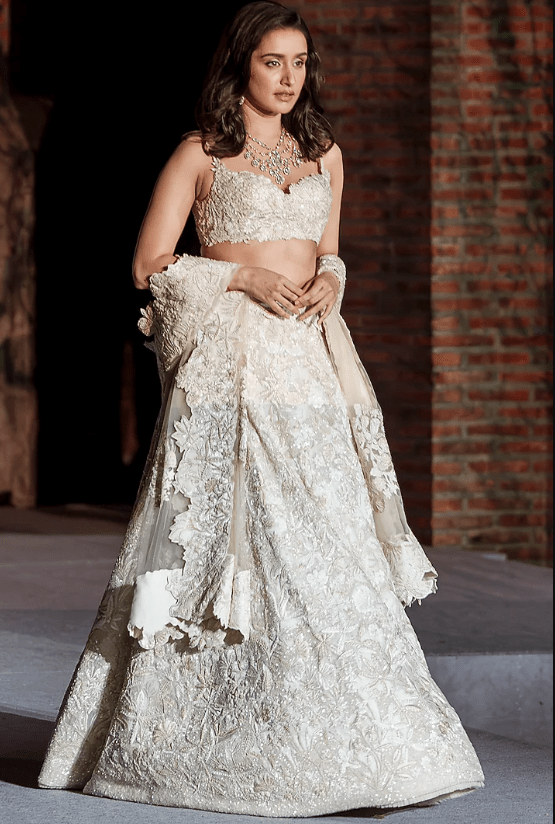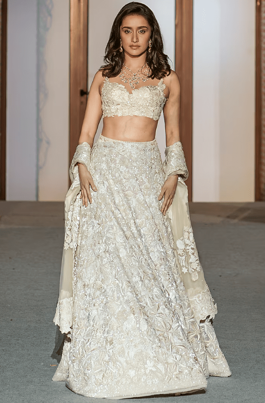Ivory Organza Sequins Work Lehenga Set