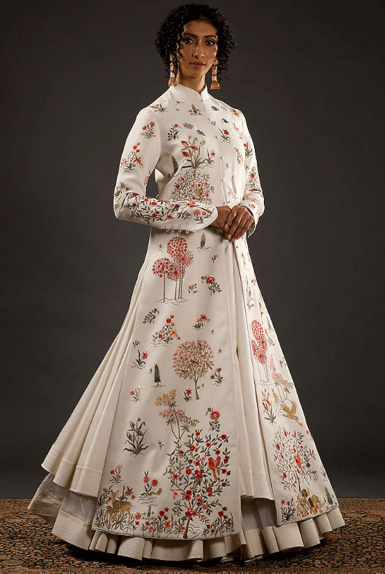 Ivory Resham & Thread Embroidered Long Jacket