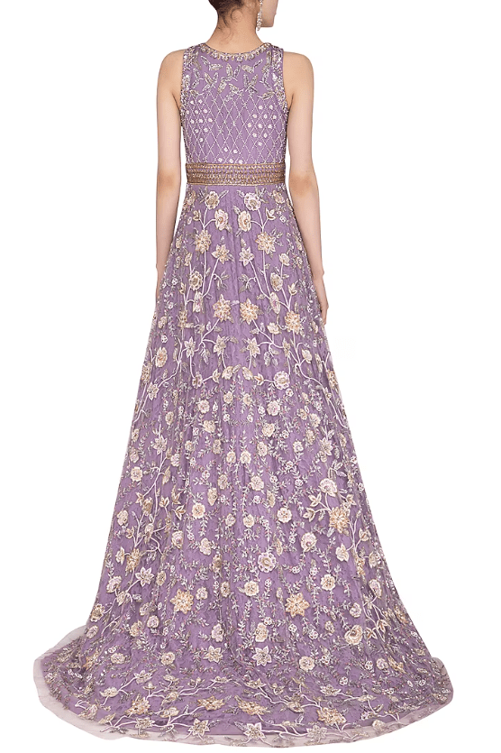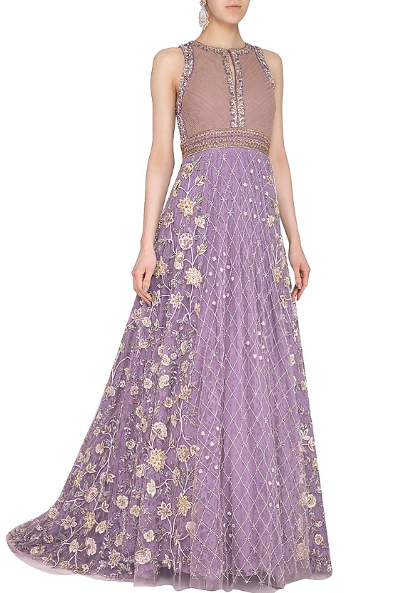 Featuring a lilac gown in net base with cut dana, sequins and moti embroidery.