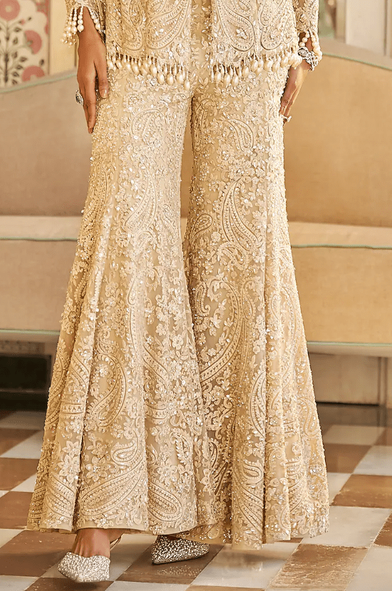 Nude Net Sequins Embroidered Sharara Set