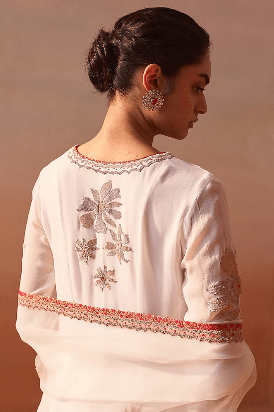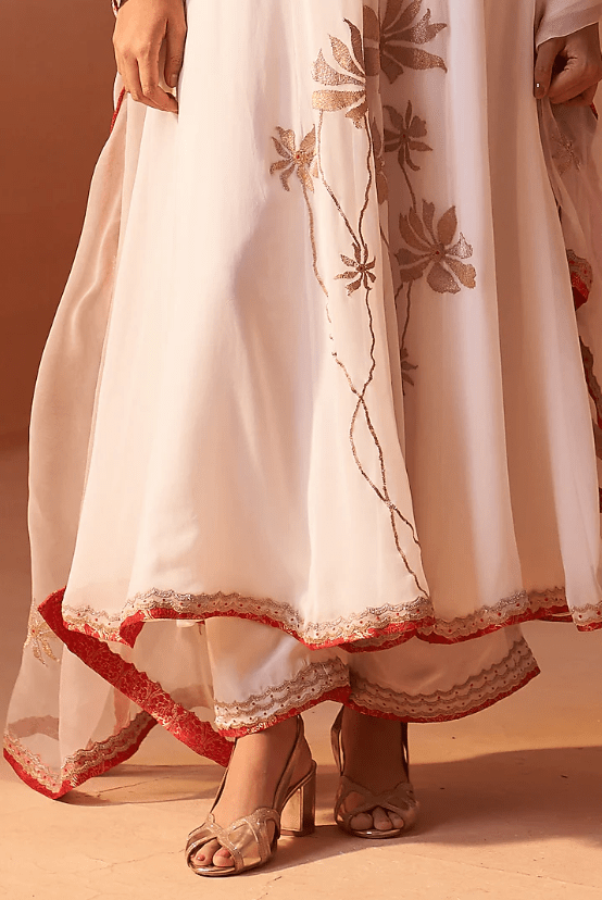 Off-White Georgette Dori Work Anarkali Set