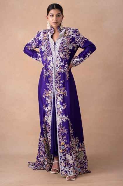No Of Components : 2 (Jacket + Drape Skirt)Colour : PurpleMaterial/Fabric : SilkFit : True to SizeCare Tip : Dry Clean Only