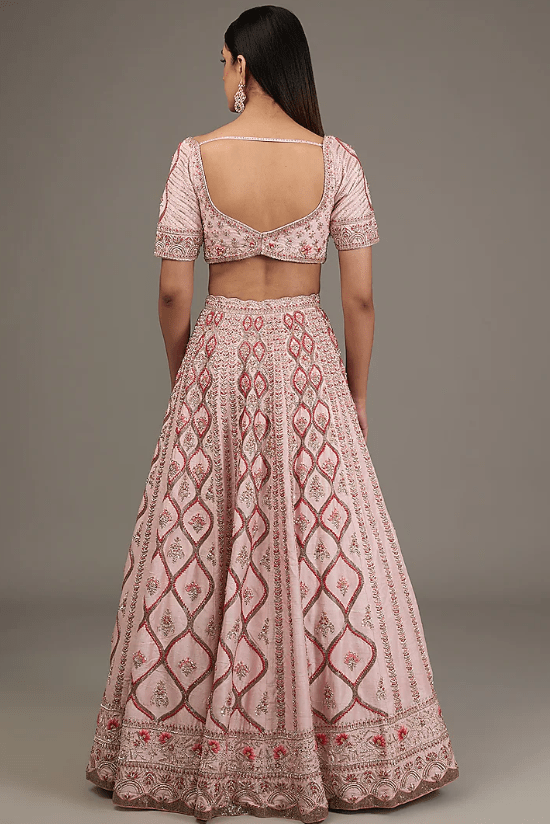 Powder Pink Raw Silk Hand Embellished Lehenga Set
