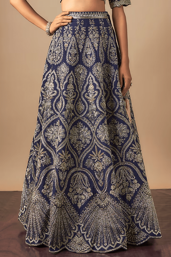 Featuring a purple lehenga in raw silk base with zardosi embroidery. It is paired with a blouse and a dupatta. Accentuate it with statement jewellery and heels for a wedding or engagement ceremony.