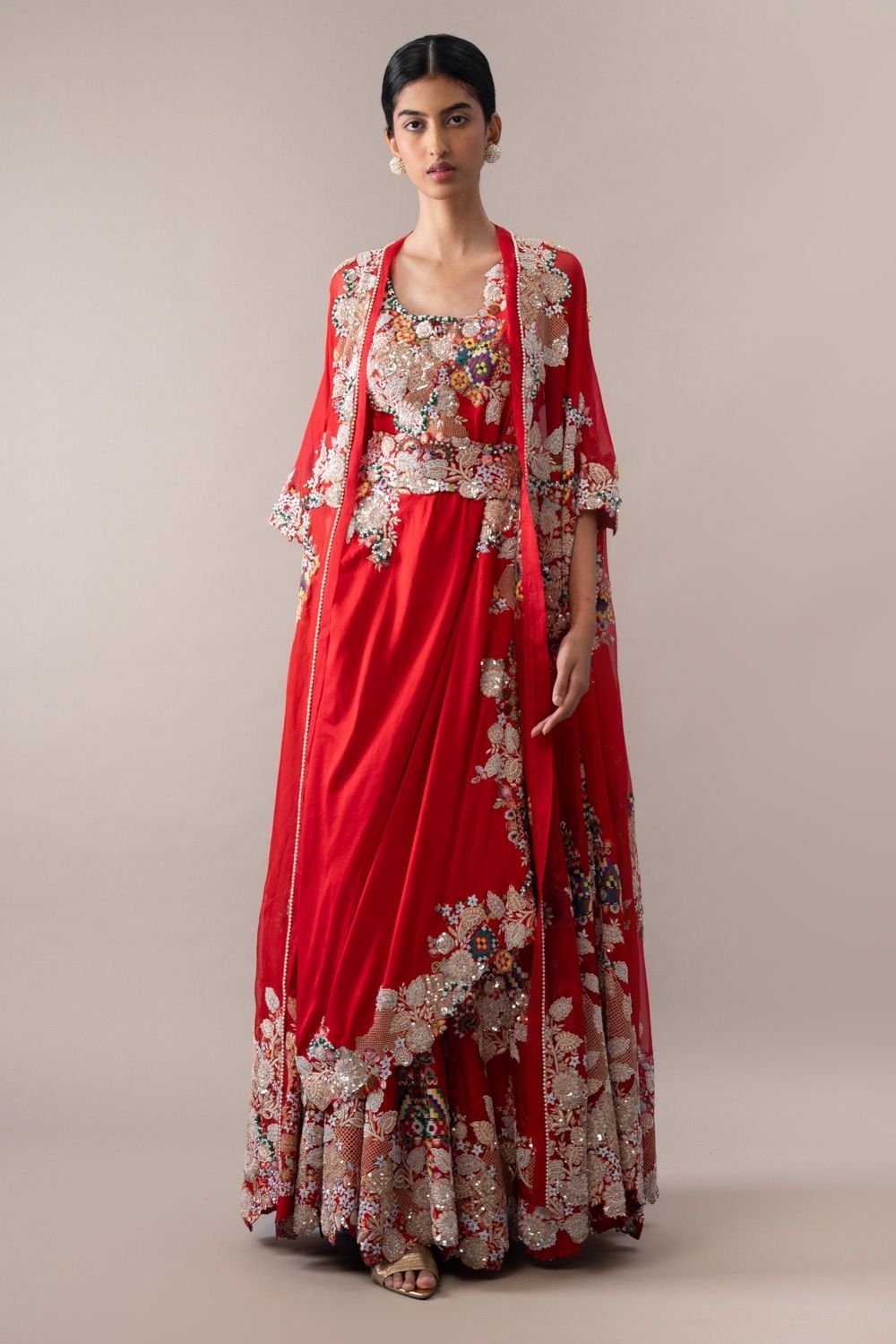 No Of Components : 5 (CAPE + BUSTIER + DRAPE + SHARARA + BELT)