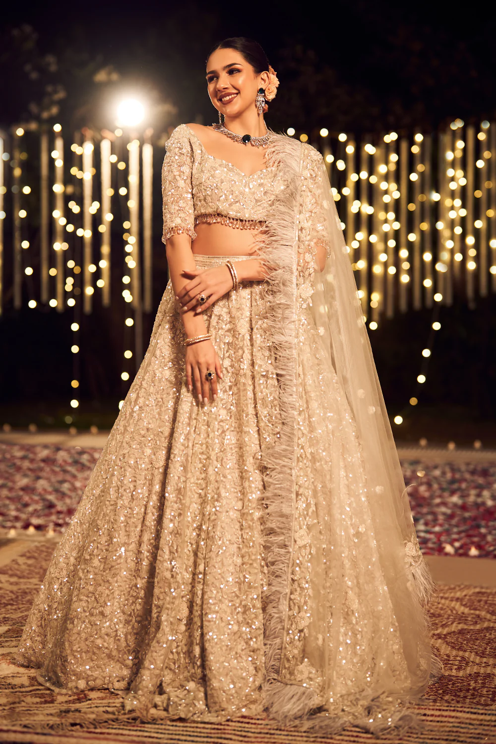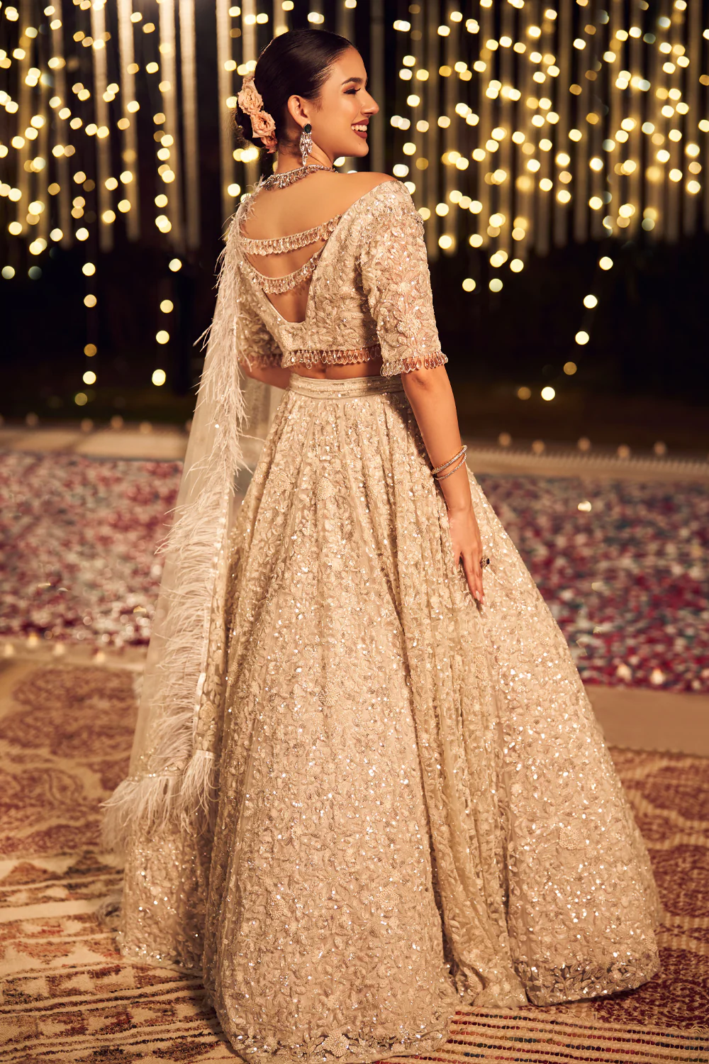 • Net dupatta with 3 inch handworked border 4 sides heavy feather detailing