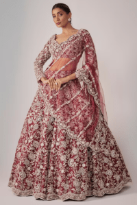 Maroon Pure Tissue 3D Floral Embroidered Lehenga Set