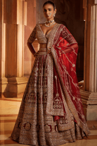 Maroon Raw Silk Hand & Machine Embroidered Lehenga Set