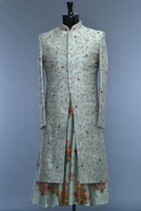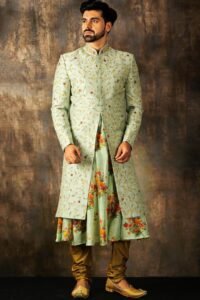 Mint Blue Zari Embroidered Raw Silk Wedding Sherwani