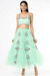 Mint Blue Tulle Embellished Lehenga Set