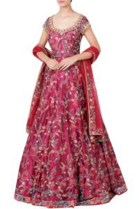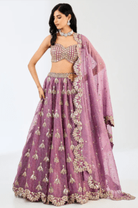 Mud Mauve Organza Sequins & Floral Embroidered Lehenga Set