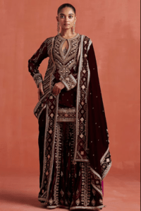 Mulberry Velvet Cutdana Embroidered Co-Ord Set
