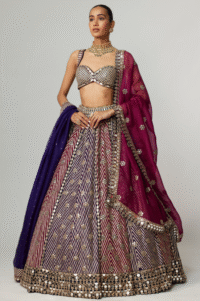 Multi-Colored Georgette Mirror Work Kalidar Lehenga Set