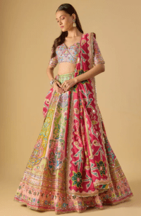 Multi-Colored Silk Hand & Machine Embroidered Lehenga Set