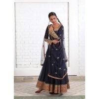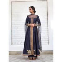 Navy Blue Chanderi Silk Embellished Kaftan Set