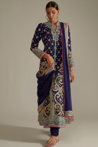 Navy Blue Dori Embroidered Velvet Wedding Sherwani
