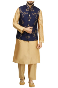 Navy blue embroidered waist coat and kurta set