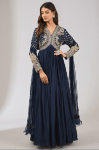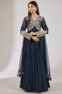 Navy Blue Fine Silk Embroidered Anarkali Set