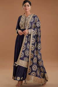 Navy Blue Silk Anarkali Set