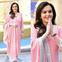 Nita Ambani In A Beige ,Blue Color Lehenga ,Wear In Isha Ambanis Wedding