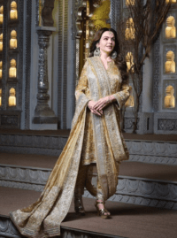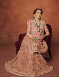 Net Zardoze Worked Shirt and tissue crop top with worked madakhil.